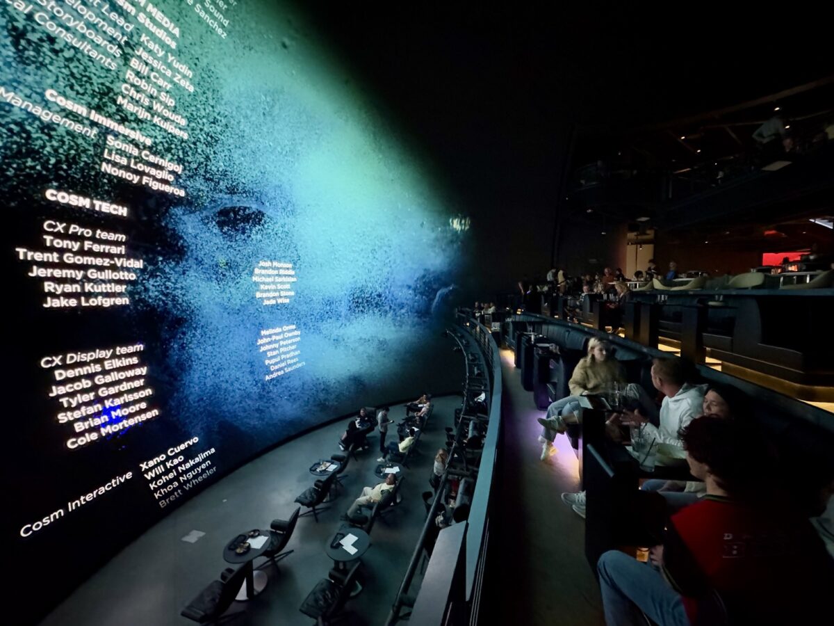 Помимо подобных шоу, тут проводят трансляцию спортивных игр. И я хотя и не увлекаюсь спортом, но вполне бы пришла на какой-нибудь матч просто ради впечатлений. Ракурсы съемки и эффект присутствия прямо на поле просто невероятный. Естественно во время представления я снимать не могла, поэтому вот несколько кадров интерьера и титры.