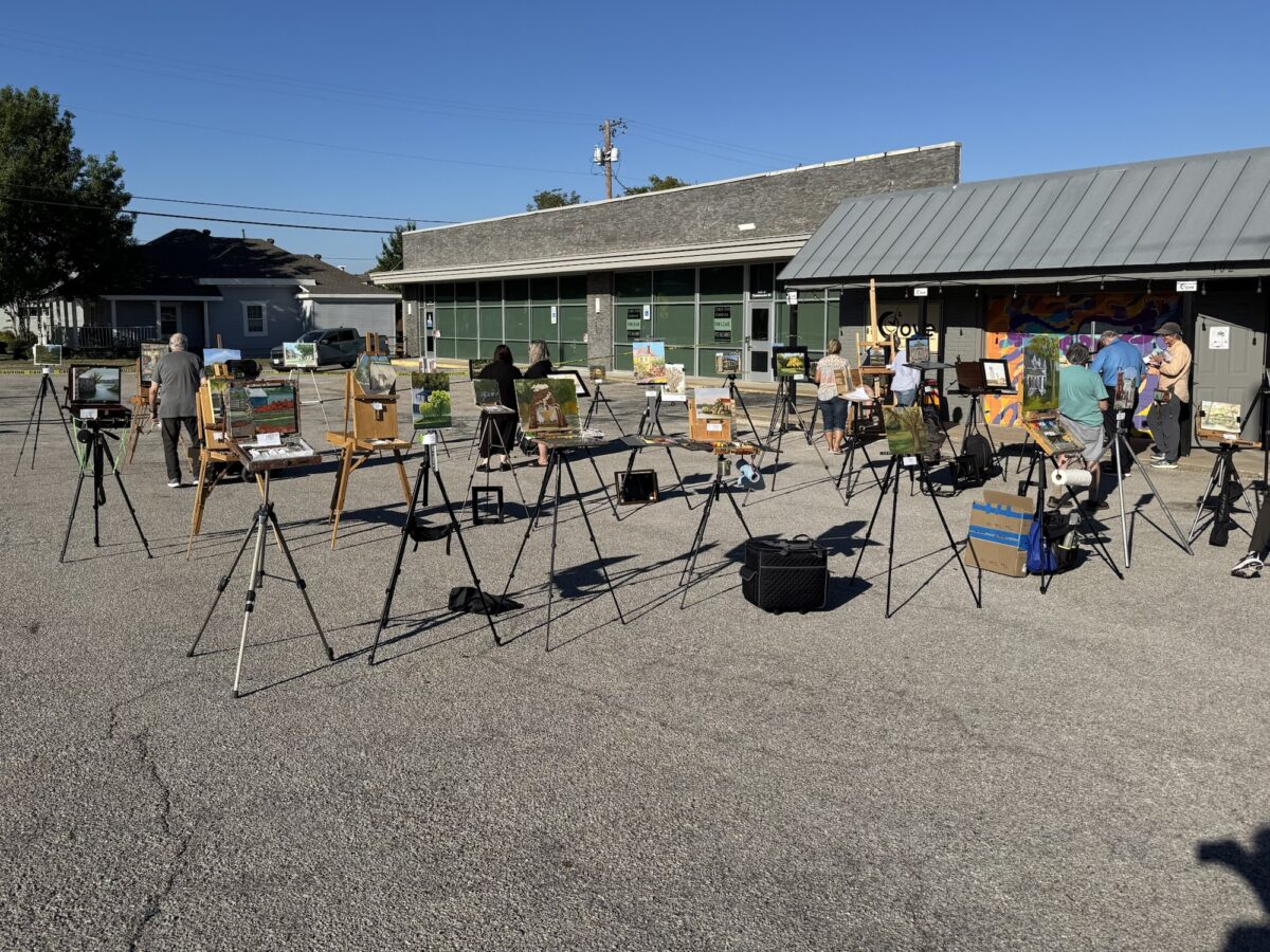 А так выглядела выставка всех участников конкурса. Называется “показ на мольбертах” – все художники расположили мольберты с работами у входа в галерею. в этот раз было больше 40 человек.