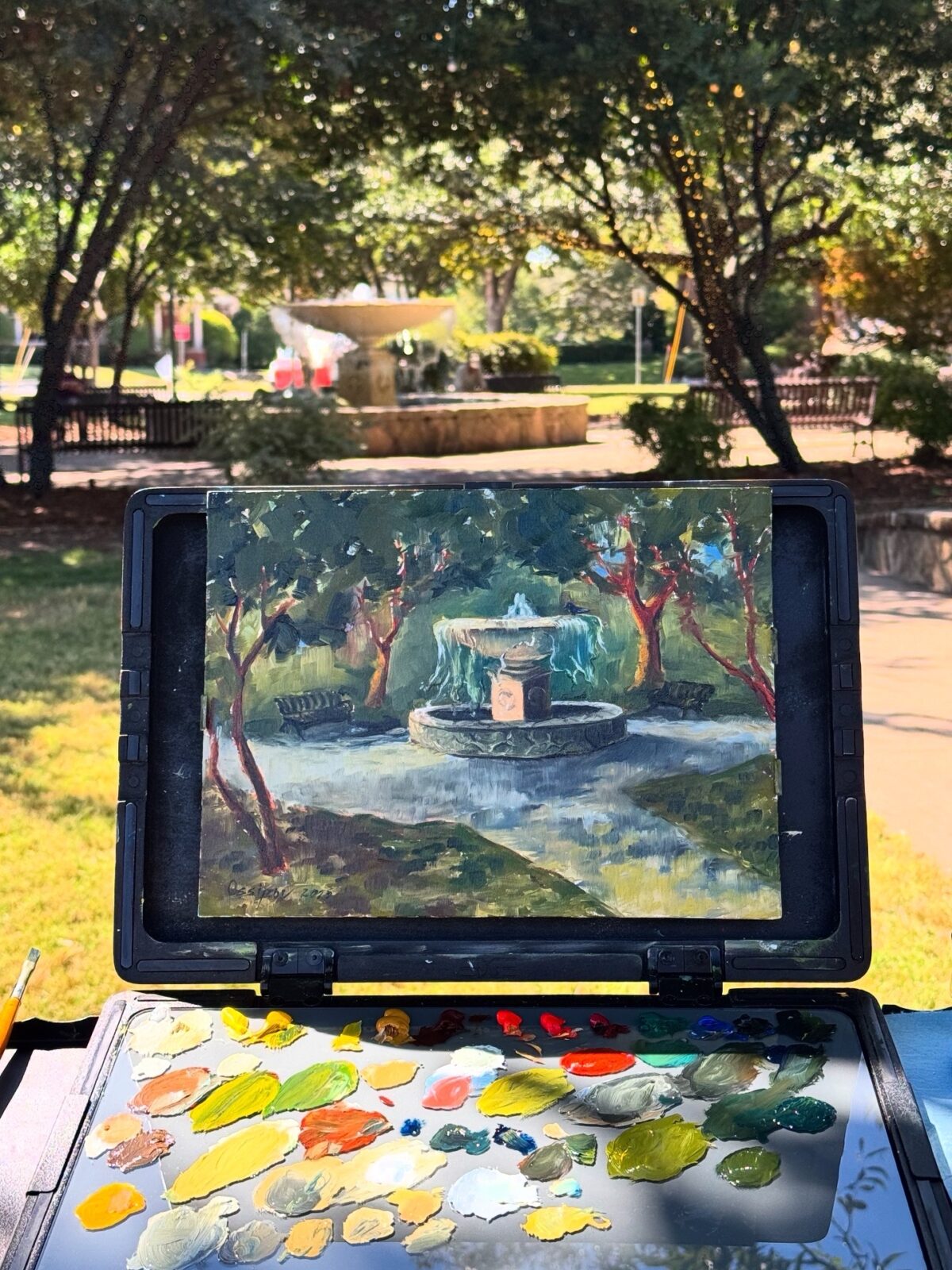 С погодой очень повезло в этот раз! На солнце конечно было жарко, но в тени самое то. Поэтому после обеда я отправилась обратно в парк на одну из лавочек у фонтана. И чтобы не сидеть без дела пока организаторы подводили итоги конкурса, я нарисовала фонтан карандашом. Мне кажется наибольшее удовольствие я получаю от рисования воды.