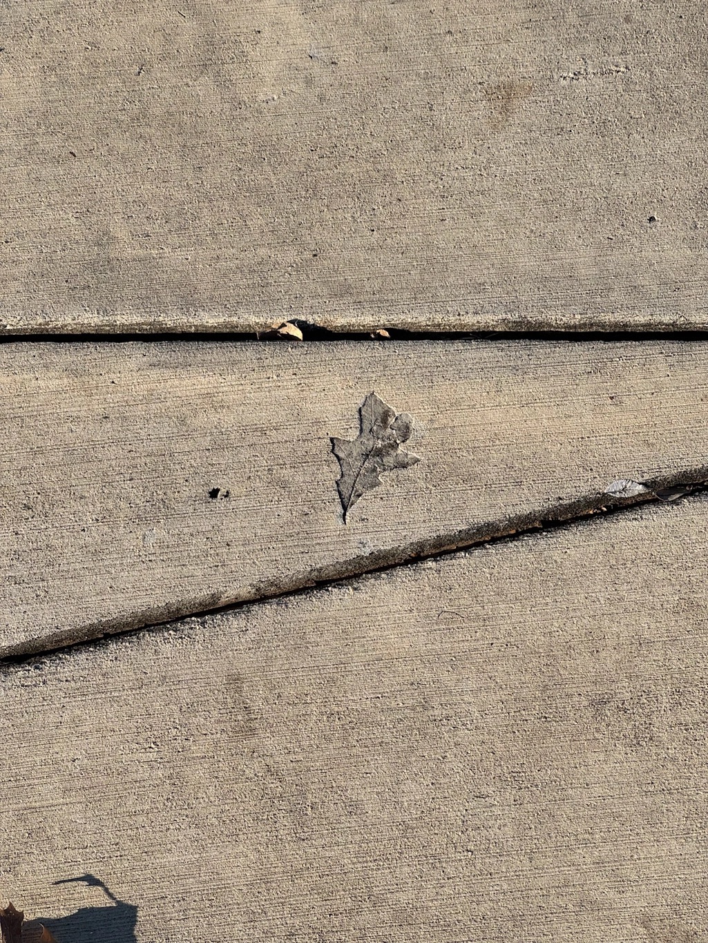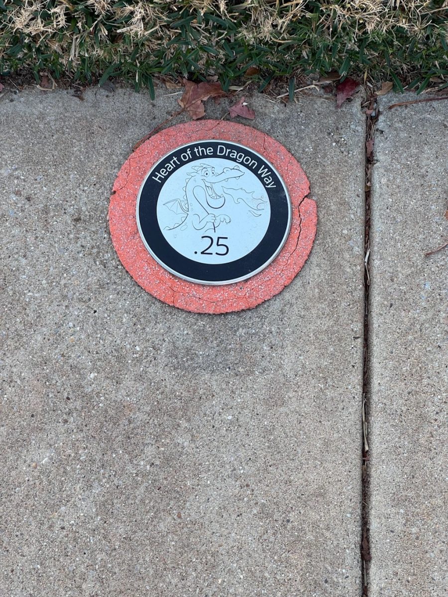 Нашла отпечаток листика в тротуаре и отметку в четверть мили, даже не знала, что у нас тут где-то есть путь дракона. Вот драконий парк точно есть, покажу его в следующий раз.