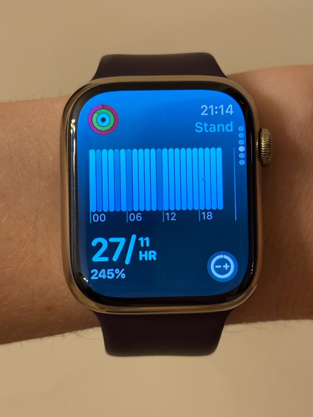(Если что, stand hour это часы, когда я двигалась хотя бы минуту. 11 это цель таких часов в сутки.)